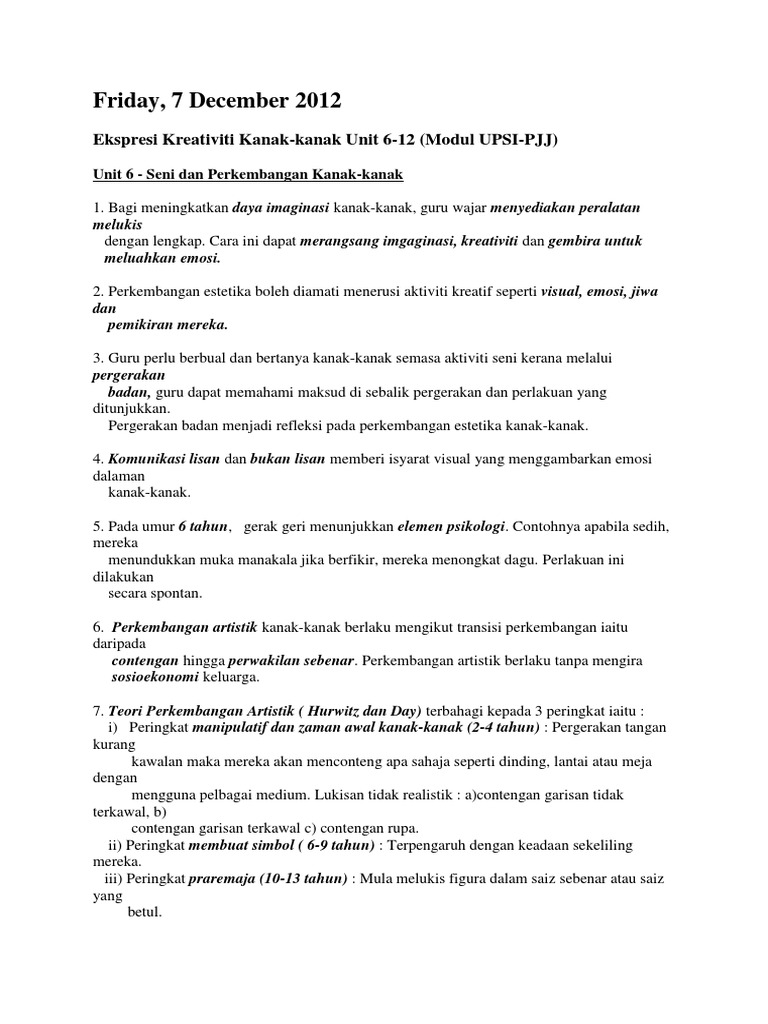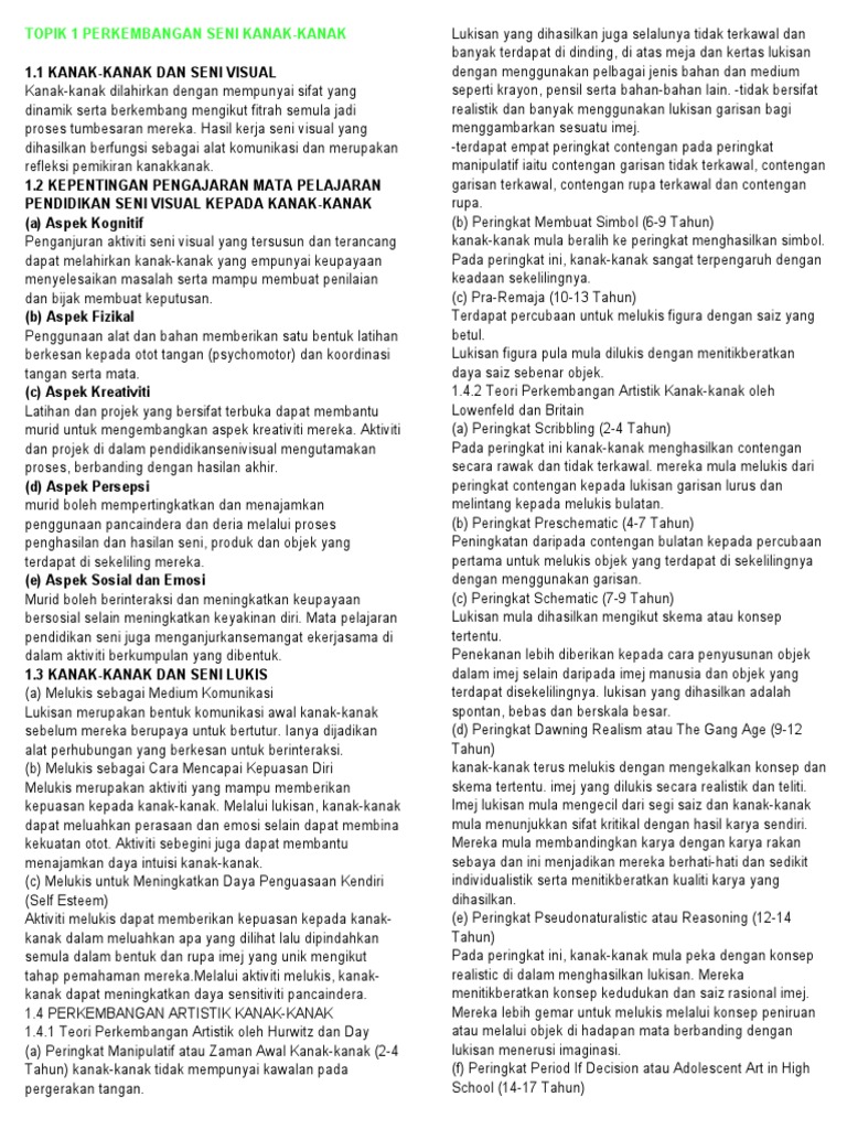 Nota Padat Perkembangan Seni Kanak Kanak Pdf