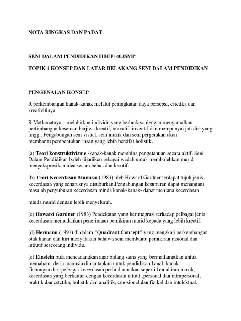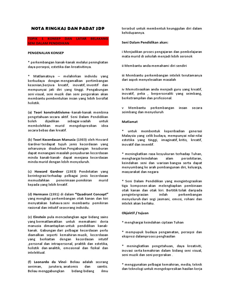 Nota Ringkas Dan Padat Seni Dalam Pendidikan Pdf